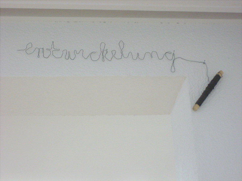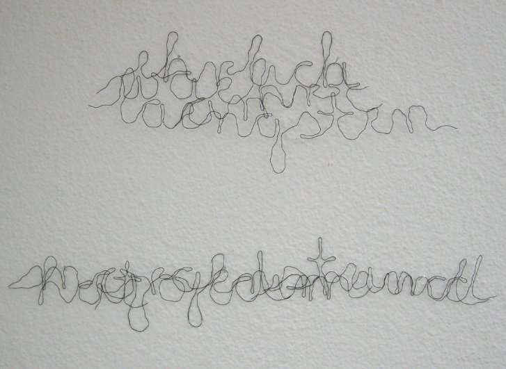Lothar Rumold: "Wörter bei Bildern", 2009 Rauminstallation mit Wörtern aus Eisendraht (Bilder von Gabriele Goerke) Fotos: Dietmar Zankel